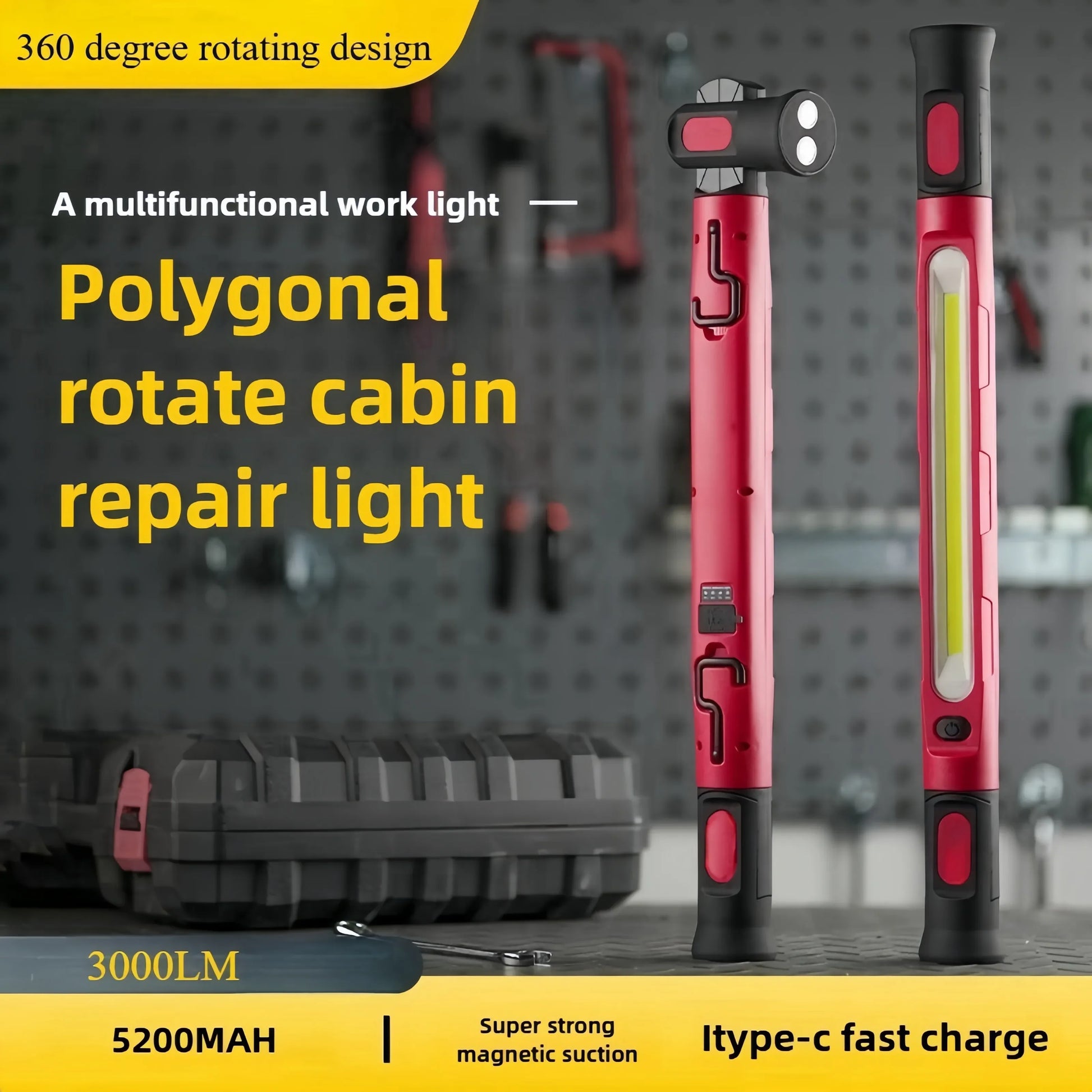 Get bright, hands-free illumination wherever you need it with the magnetic work light. A high output COB panel delivers wide, even flood light for close-up tasks, while a focused spot LED reaches into tight spaces. The strong magnetic base grips steel surfaces for under-hood, appliance, and workshop jobs, and the folding stand plus 360 degree swivel head let you aim light precisely on benches, cars, or job sites.